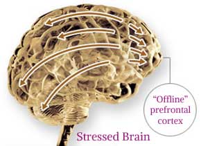 壓力、壓抑、疲勞、不當的飲食、含酒精飲料以及藥物都會損害大腦前額葉皮層(大腦的「首席執行官」)與大腦其他部份之間的神經聯結。你過度疲倦時,或者處於巨大的精神或肉體壓力下時,大腦就會繞過它-「較高級」的、較進化且較理性的前額執行路徑,而採用它較為原始的「刺激/反應」路徑。結果你就會不假思索地回應日常生活中的需求;你會做出衝動、目光短淺的決定。當大腦的首席執行官「關機」時,恐懼和憤怒之類的強烈情緒就會接管大腦,於是你對世界的看法也染上充滿敵意的色彩。